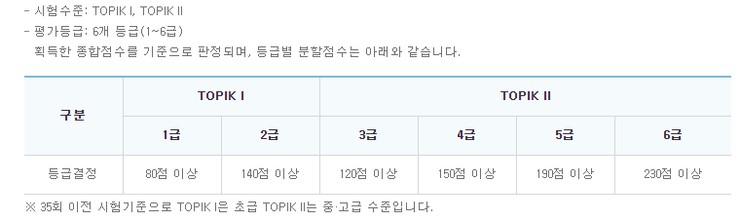 TOPIK ¿¬°è°¡ °¡´ÉÇϱ⠶§¹®¿¡ TOPIK 4~6±ÞÀ» Ãëµæ Çϸé 5´Ü°è·Î ÀÎÁ¤À» ÇØÁÝ´Ï´Ù